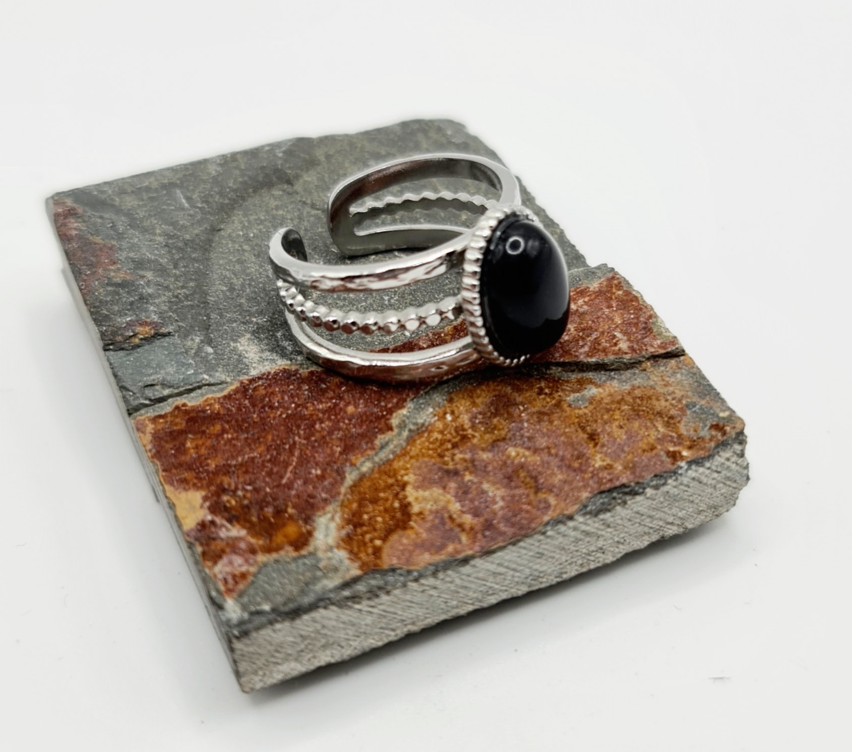 Retrouvez sur notre site internet notre modèle de bague Chloé. Idéale pour un cadeau ou pour vous faire plaisir, cette bague ajustable est disponible en doré/blanc et en argenté/noir. De grande qualité, nos produits sont en acier inoxydable et hypoallergéniques. Ils ne noircissent pas et résistent à l’eau.