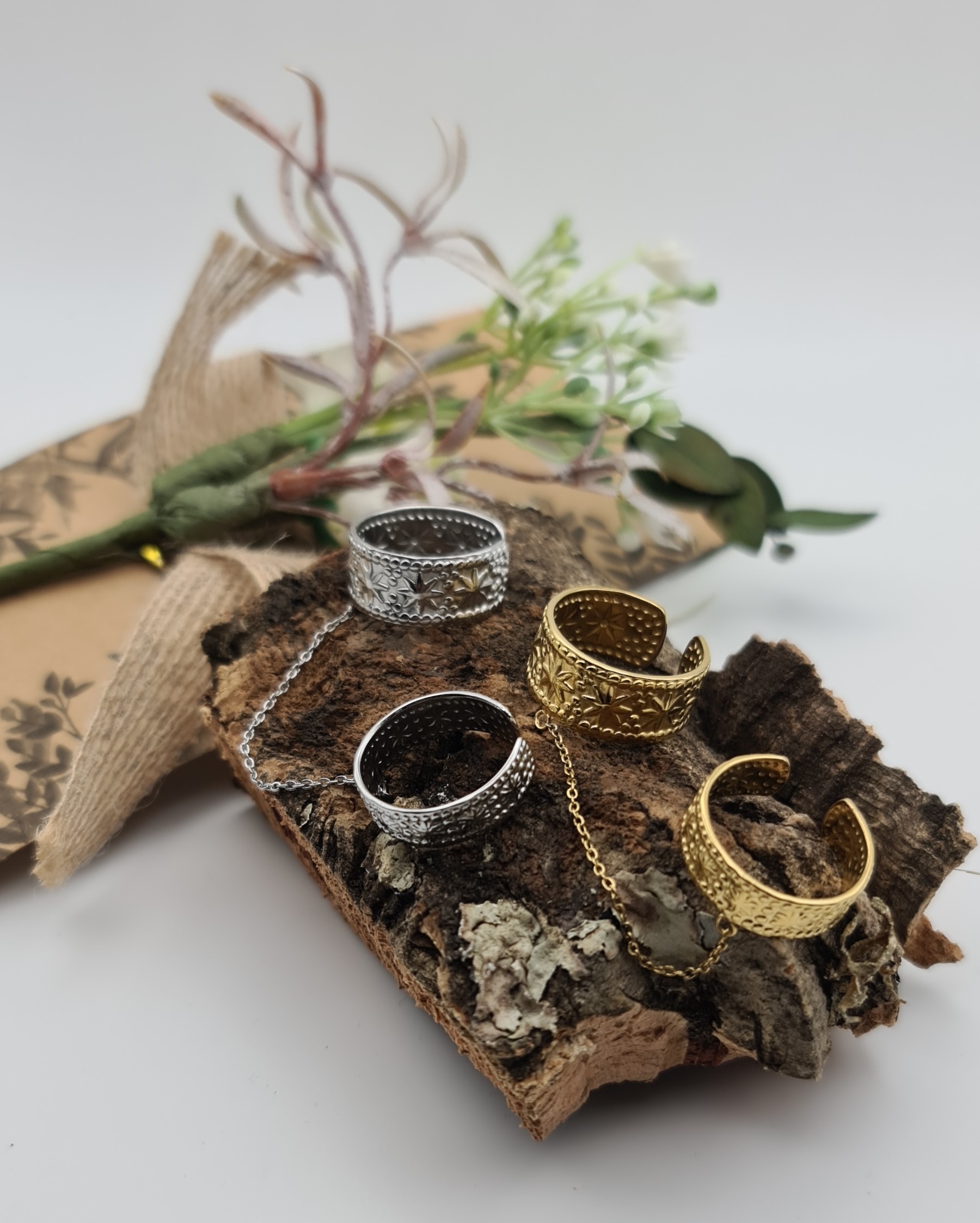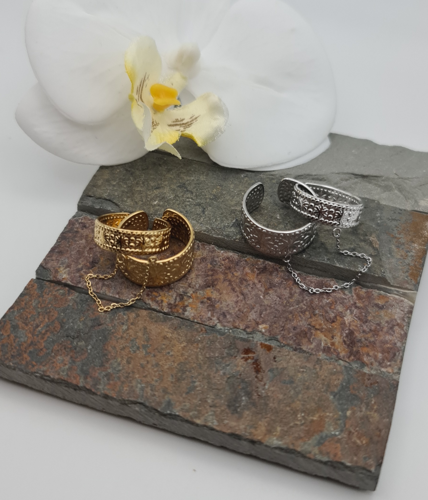 Retrouvez sur notre site internet notre modèle de bague double Camille. Idéale pour un cadeau ou pour vous faire plaisir, cette bague ajustable est disponible en doré et en argenté. De grande qualité, nos produits sont en acier inoxydable et hypoallergéniques. Ils ne noircissent pas et résistent à l’eau.