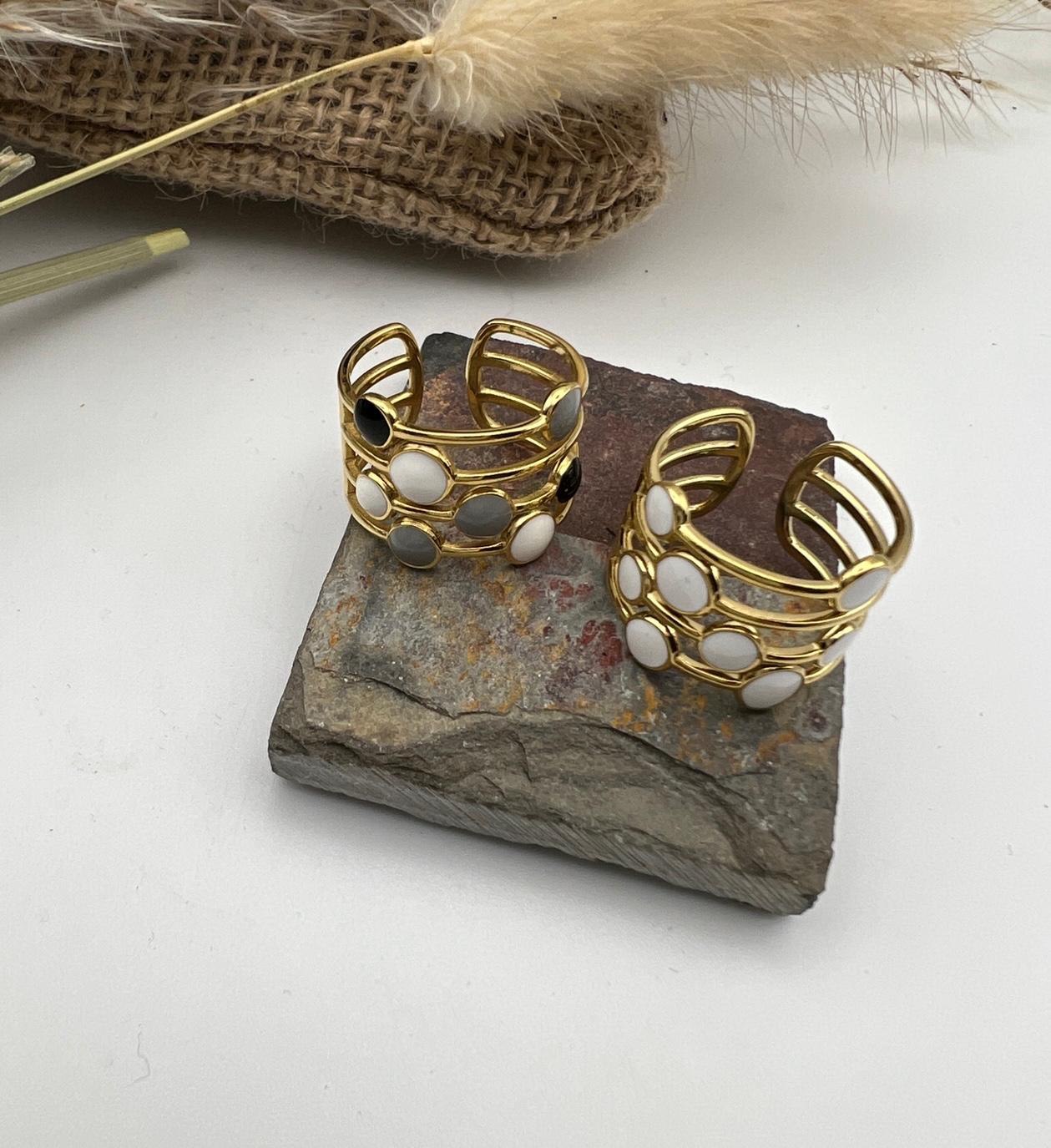 Retrouvez sur notre site internet notre modèle de bague Ella. Idéale pour un cadeau ou pour vous faire plaisir, cette bague ajustable est disponible en doré blanc et en doré noir & gris. De grande qualité, nos produits sont en acier inoxydable et hypoallergéniques. Ils ne noircissent pas et résistent à l’eau.