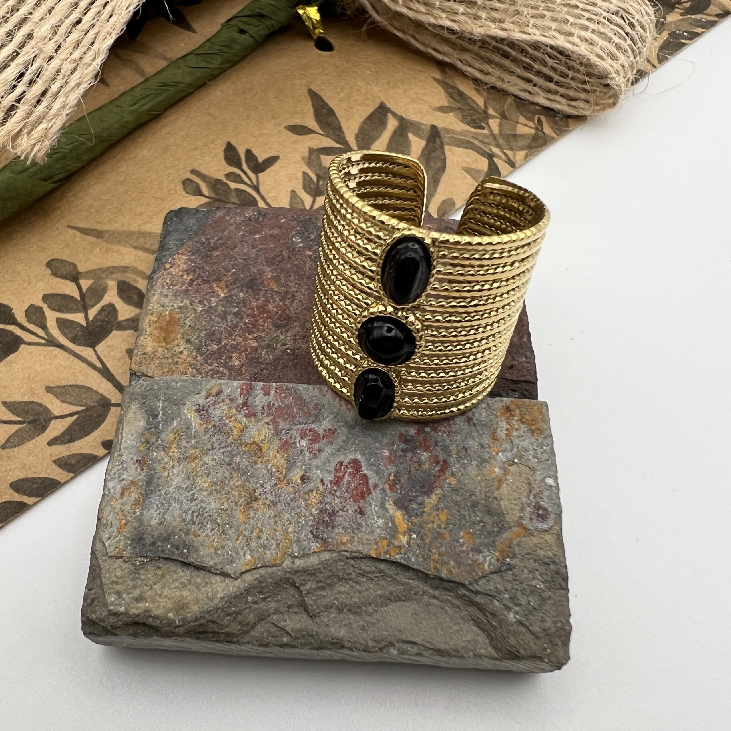 Retrouvez sur notre site internet notre modèle de bague Lilli. Idéale pour un cadeau ou pour vous faire plaisir, cette bague ajustable est disponible en doré noir. De grande qualité, nos produits sont en acier inoxydable et hypoallergéniques. Ils ne noircissent pas et résistent à l’eau.