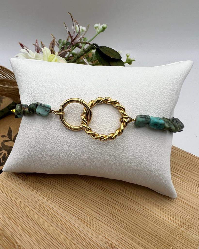 Retrouvez sur notre site internet notre modèle de bracelet Brooklyn. Idéal pour un cadeau ou pour vous faire plaisir, ce bracelet ajustable est disponible en doré vert. De grande qualité, nos produits sont en acier inoxydable et hypoallergéniques. Ils ne noircissent pas et résistent à l’eau.