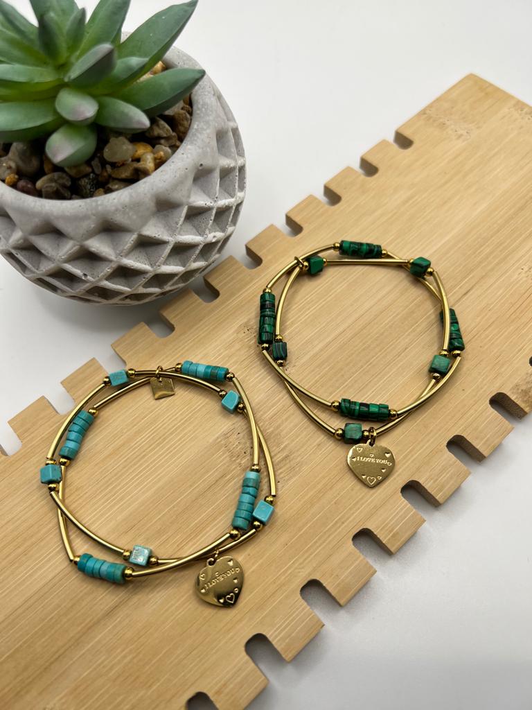 Retrouvez sur notre site internet notre modèle de bracelet Valentine. Idéal pour un cadeau ou pour vous faire plaisir, ce bracelet ajustable est disponible en turquoise, en vert et en noir. De grande qualité, nos produits sont en acier inoxydable et hypoallergéniques. Ils ne noircissent pas et résistent à l’eau.