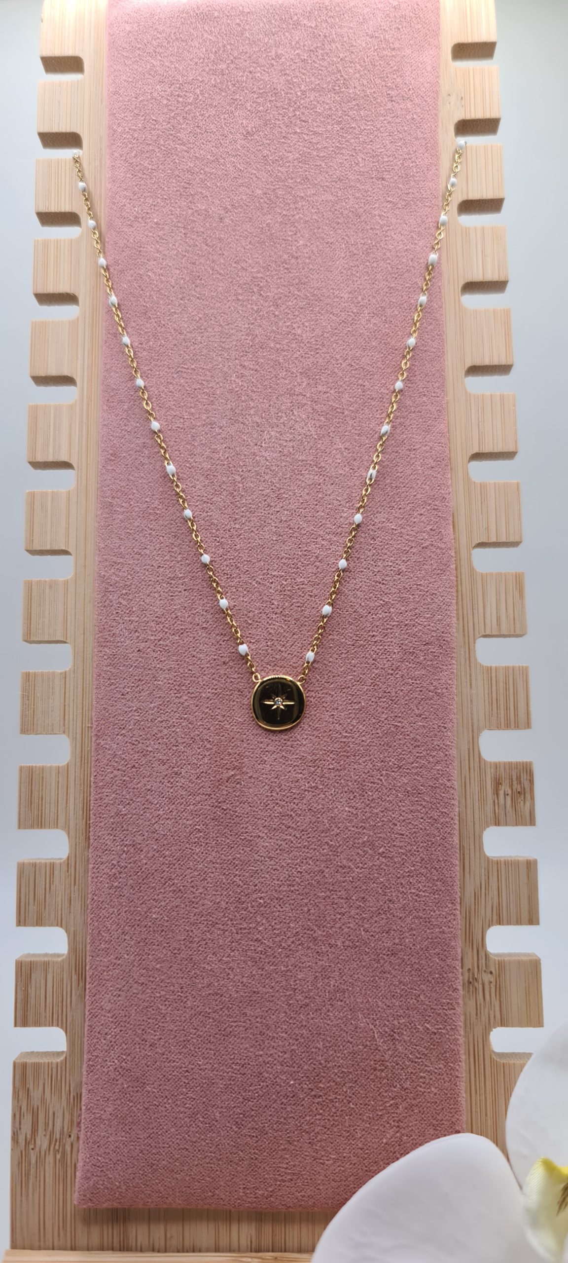 Retrouvez sur notre site internet notre modèle de collier Cassiopée. Idéal pour un cadeau ou pour vous faire plaisir, ce collier ajustable est disponible en noir & doré et blanc & doré. De grande qualité, nos produits sont en acier inoxydable et hypoallergéniques. Ils ne noircissent pas et résistent à l’eau.