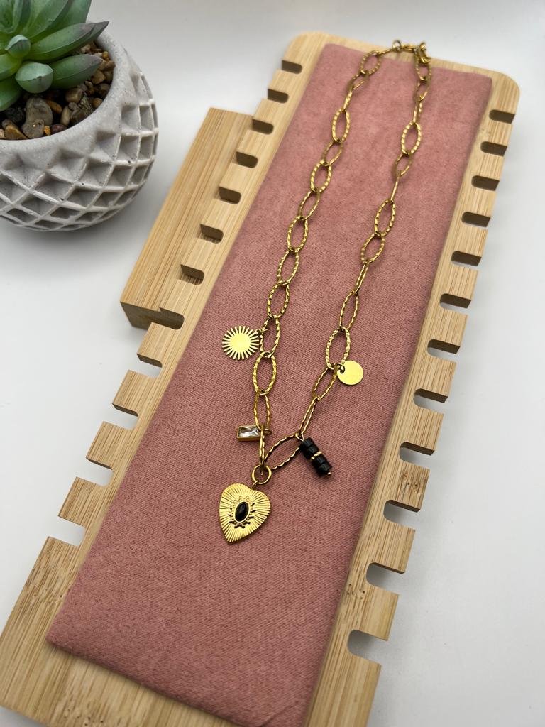 Retrouvez sur notre site internet notre modèle de collier Maya. Idéal pour un cadeau ou pour vous faire plaisir, ce collier ajustable est disponible en noir & doré. De grande qualité, nos produits sont en acier inoxydable et hypoallergéniques. Ils ne noircissent pas et résistent à l’eau.