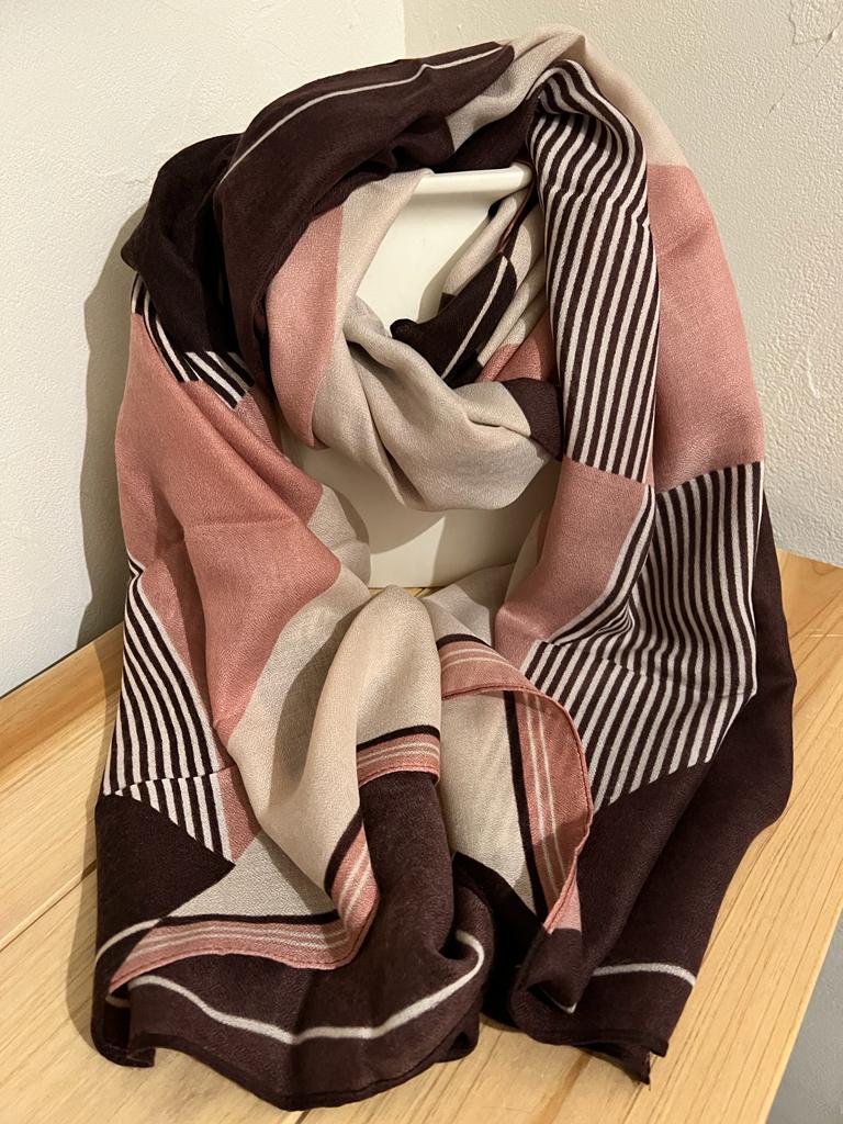 Retrouvez sur notre site internet notre modèle de foulard Trio beige marron & rose. Cadeau idéal pour faire plaisir, notre foulard en viscose est très doux et de grande qualité. Il apportera une touche d’originalité à toutes vos tenues.