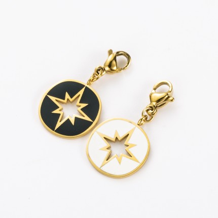 Retrouvez sur notre site internet notre modèle de pendentif Charms Albane . Idéal pour un cadeau ou pour vous faire plaisir, ce Charms est disponible en blanc et doré et en noir et doré.