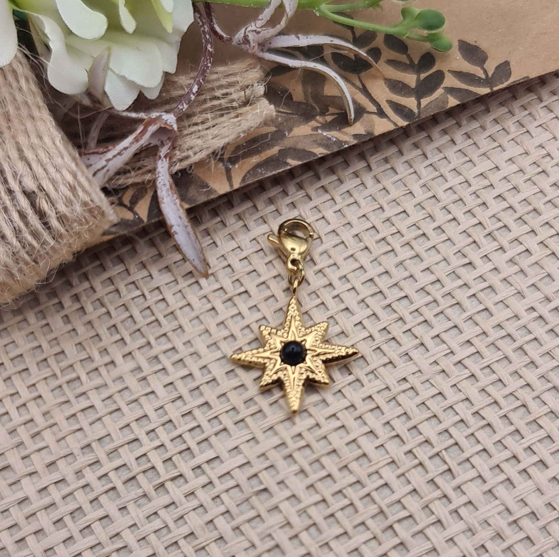 Retrouvez sur notre site internet notre modèle de pendentif Charms Stella. Idéal pour un cadeau ou pour vous faire plaisir, ce Charms est disponible en doré et noir.